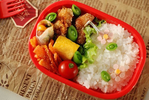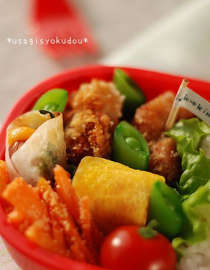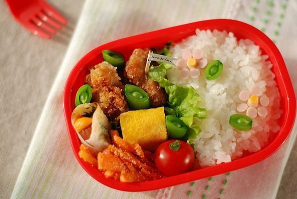昨日の唐揚げお花弁当 に使った赤いお弁当箱は