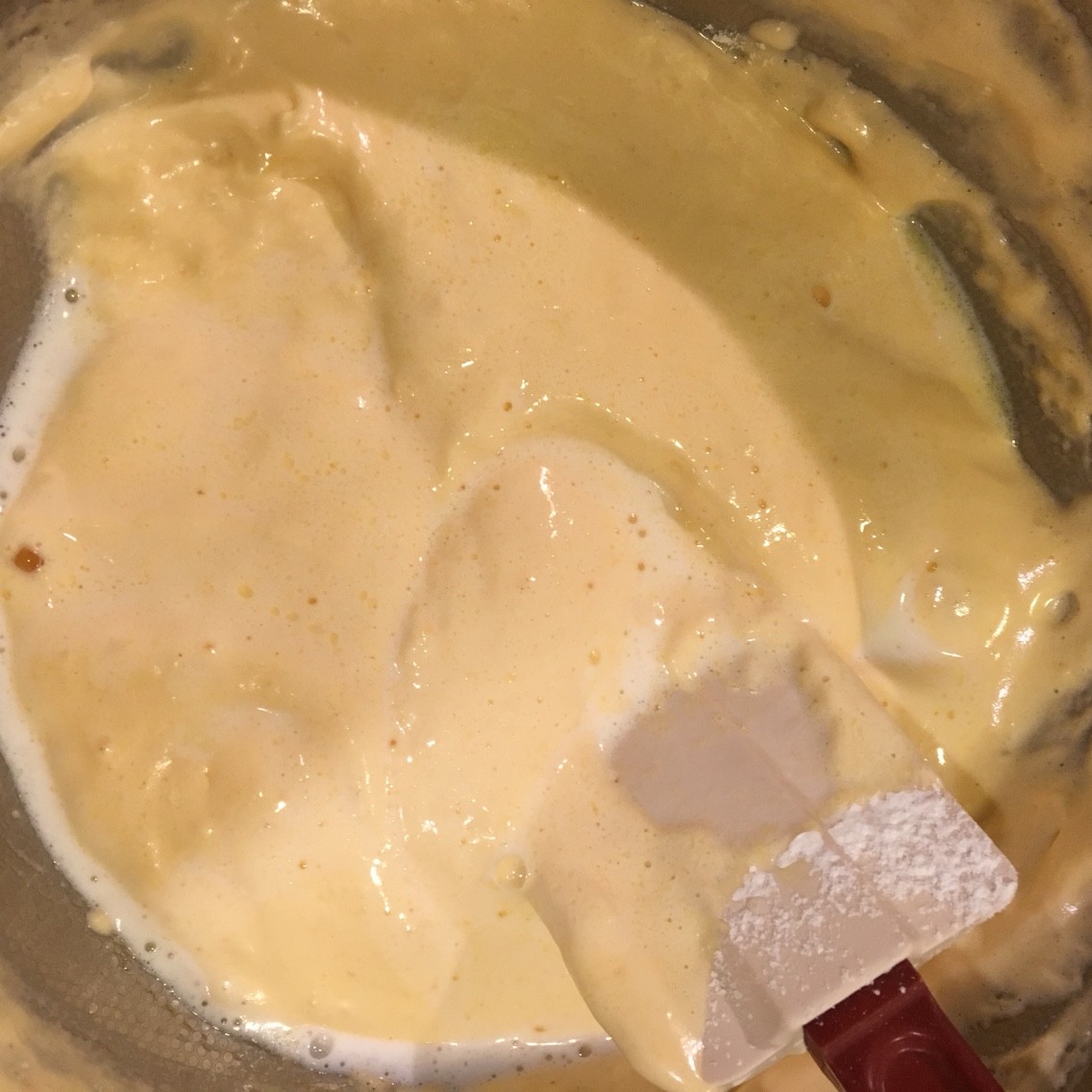 ・衣をつけたお肉をフライパンに入れ、油をヒタヒタに注ぎ、中弱火で10分、裏返して3分揚げる