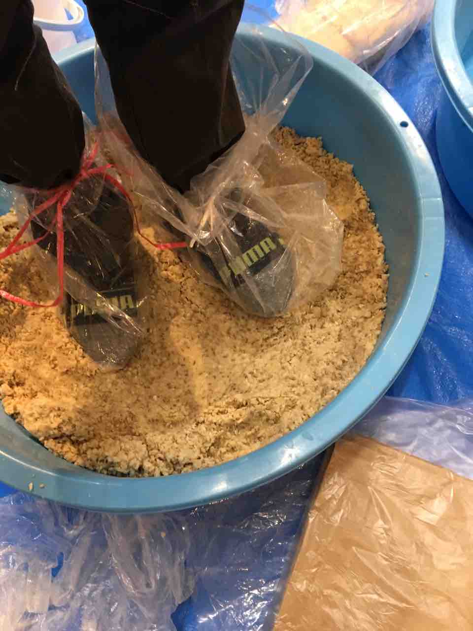 私が切り落とした切れ端を試食してます。