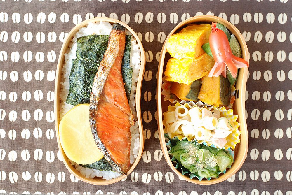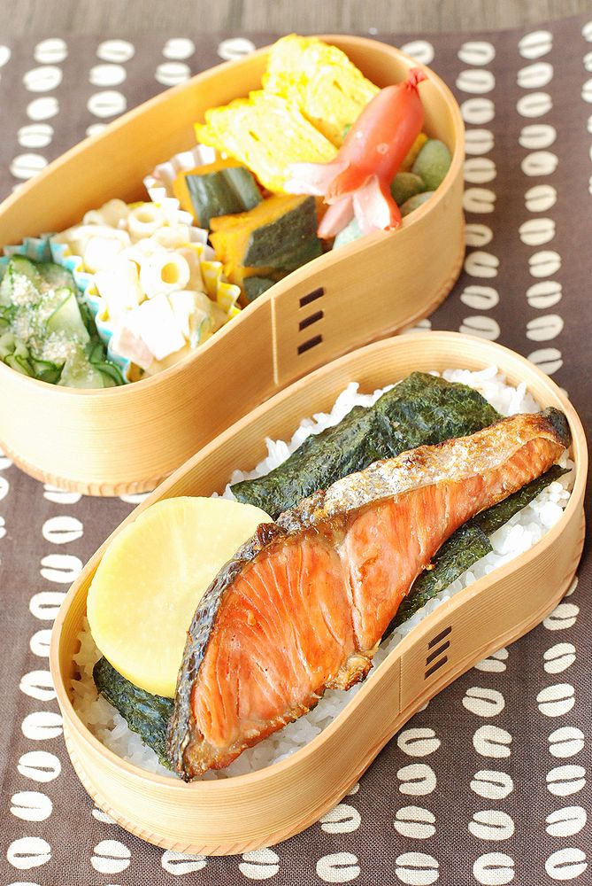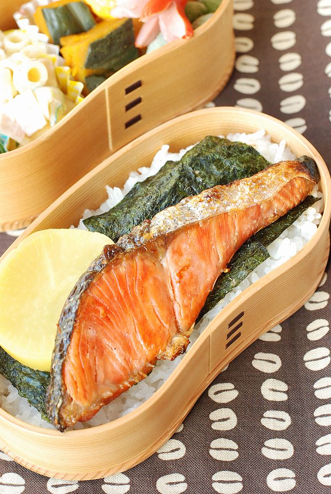 Kパパはシャケの味が他のおかずに移るのを嫌うので、たいてい海苔やバラン、大葉などでしっかりガードしてるんですよ