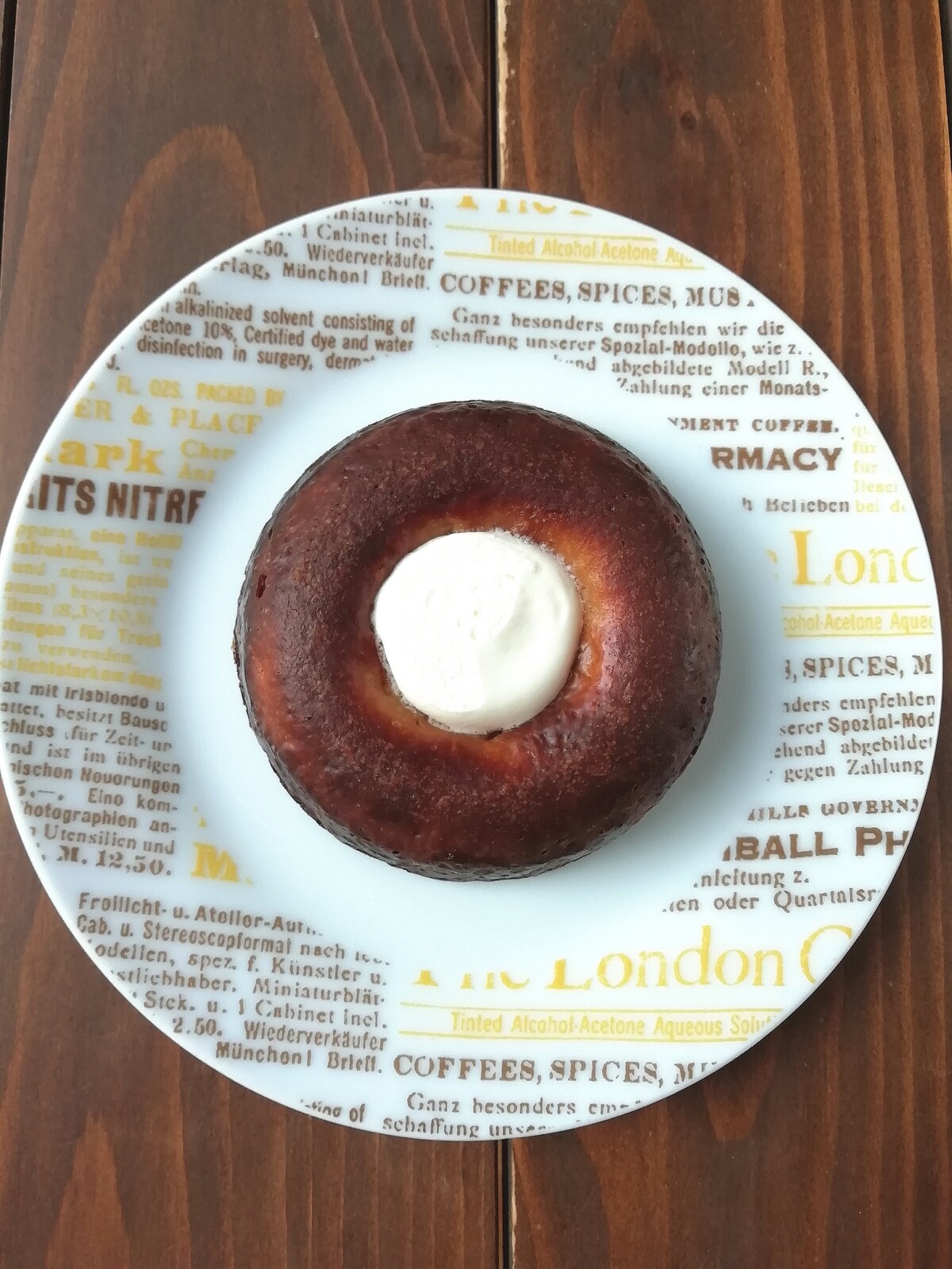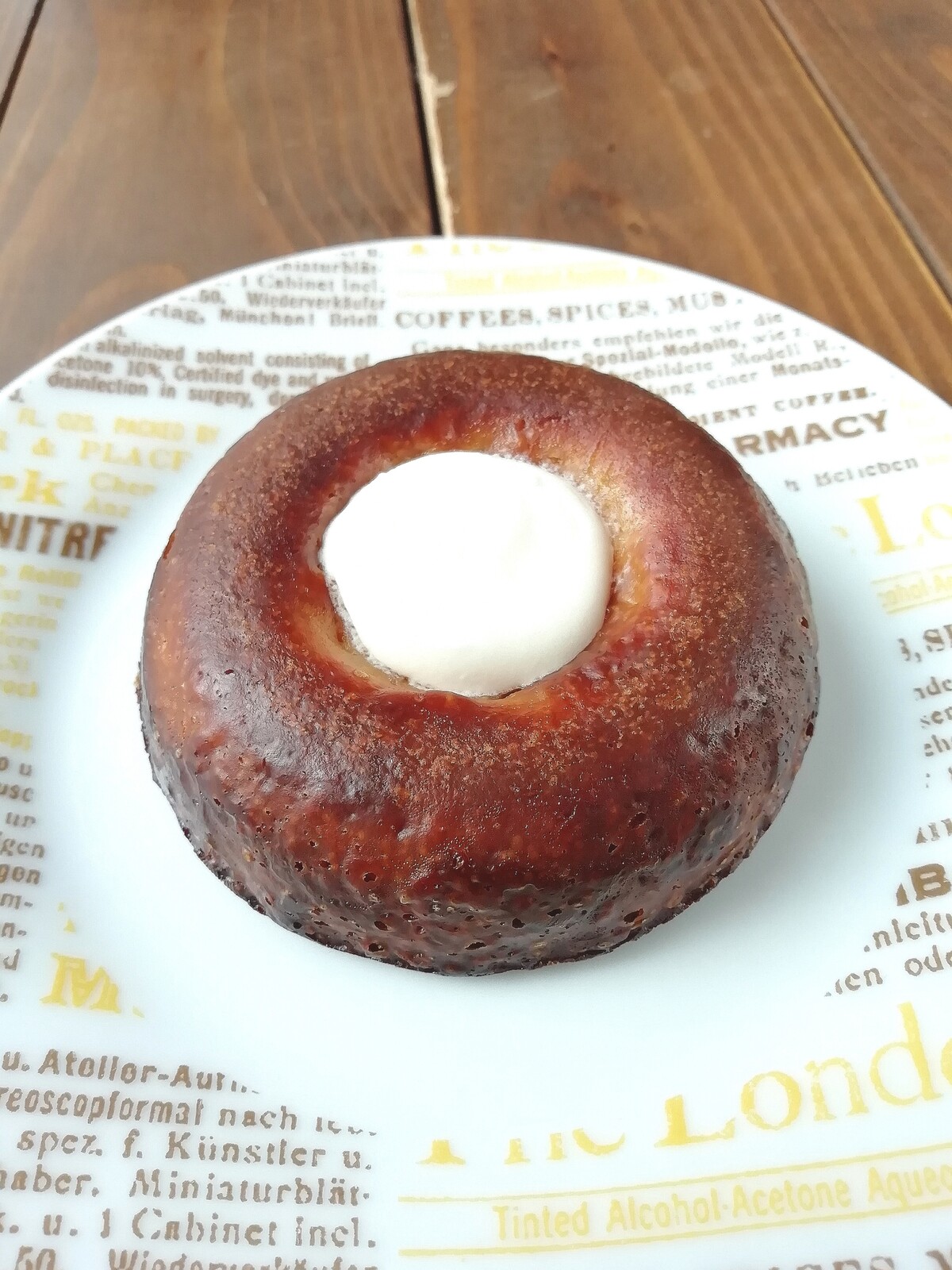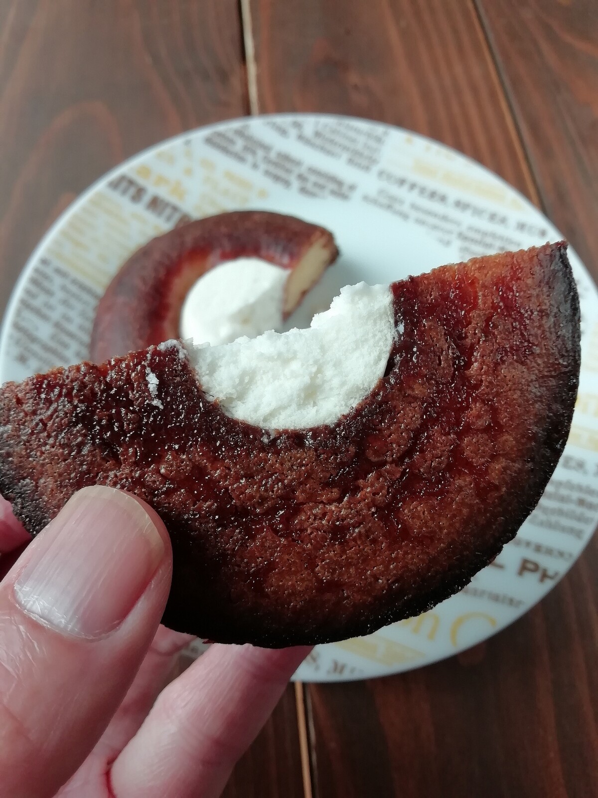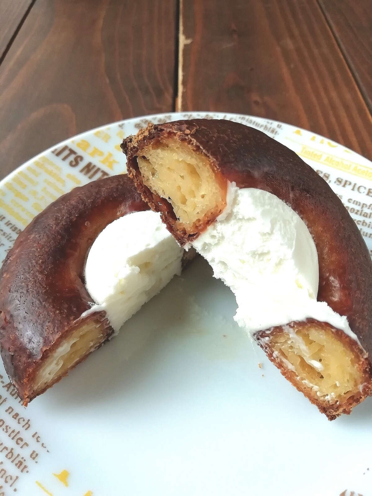 ドーナツ型で中にホイップクリームが絞ってあるという進化系のハイブリットスイーツですよ~