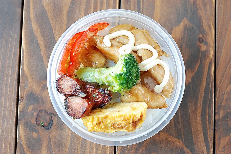 この日のタッパー弁当は、昼休みに病院に行く予定があり食事の時間をあまり取れなかったので、速攻掻き込めるよう丸弁にしました。