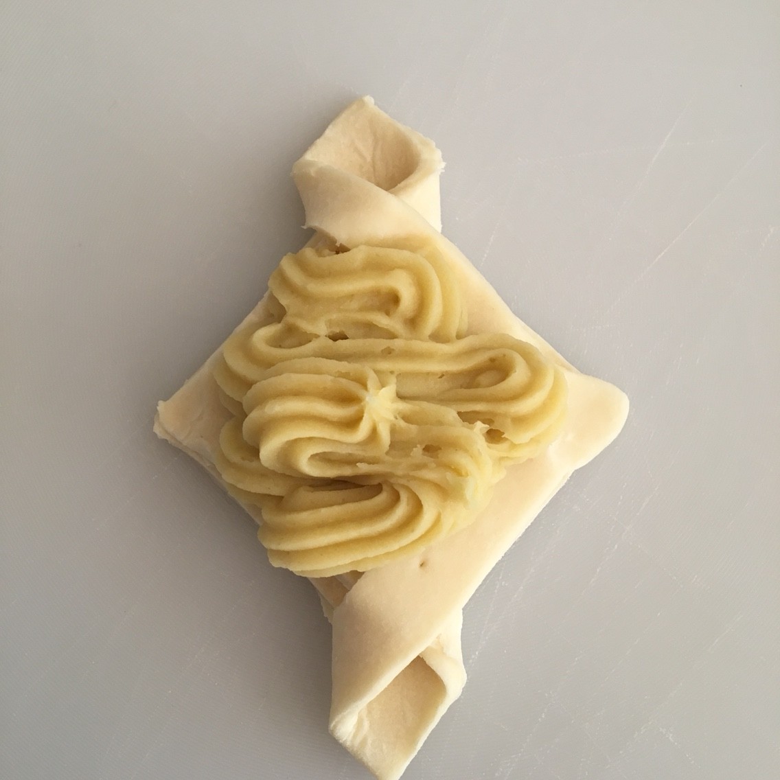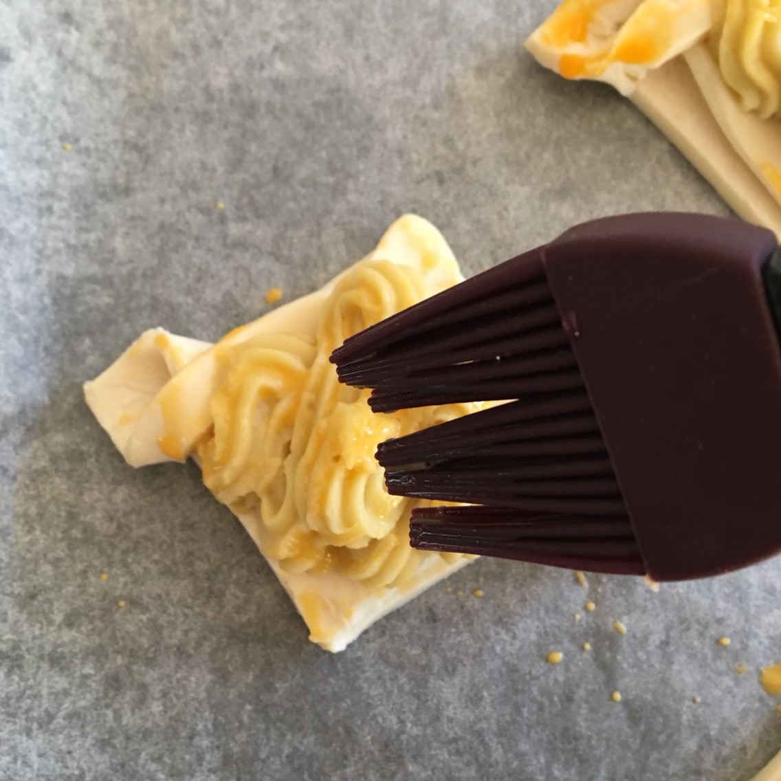 あと、パイ生地はダレやすいのであまり柔くなったら冷蔵庫で一度固くして焼くと綺麗に出来ると思います♡
