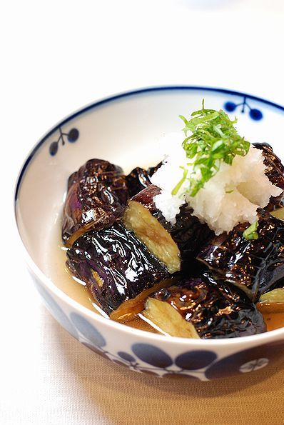 茄子は揚げた後、熱湯を回しかけ油抜きしてました-