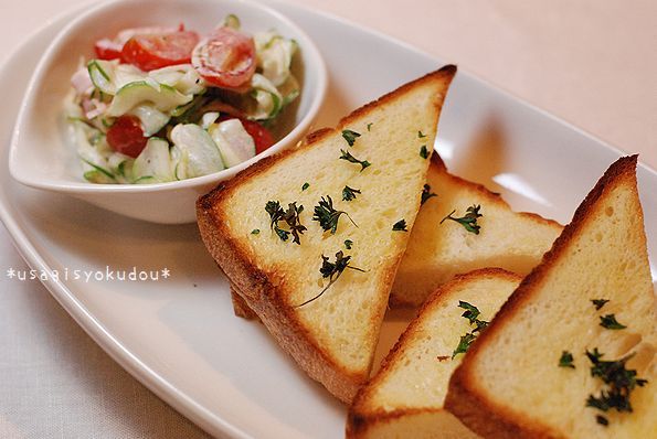 胡瓜とトマトのコンソメマヨ和え&バタートースト