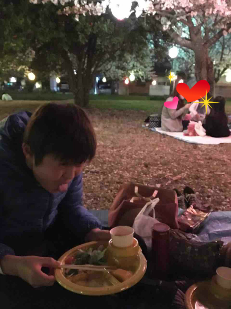昨日は風が強くて寒かったので、がーッと食べて30分程の花見で家に戻りました~笑