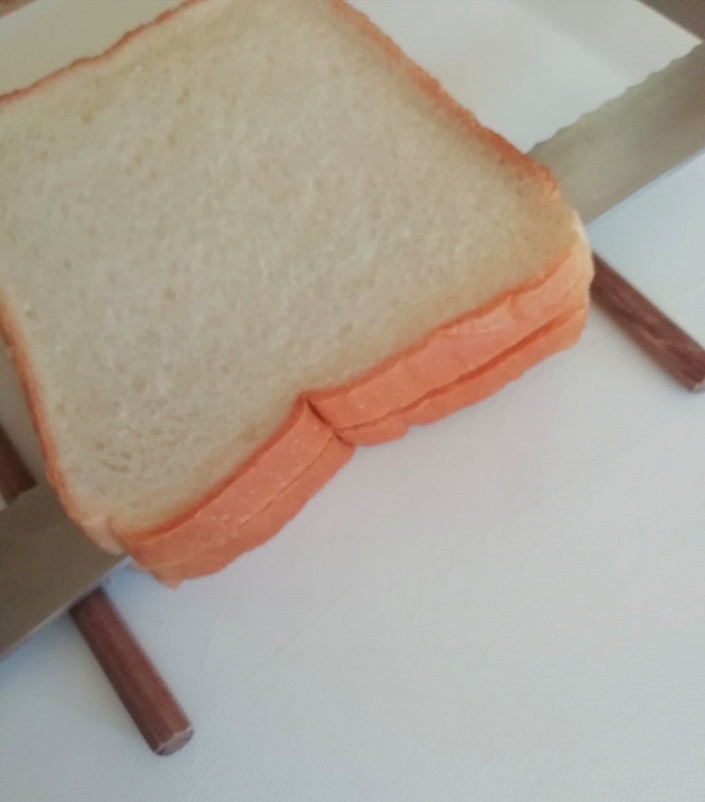 ゆで卵は糸で切ったことがあったけど、パンはありませんでした!