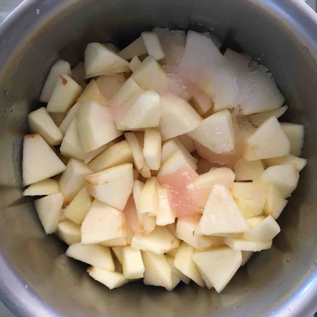 紅玉は皮を剥き実は塩水にさっと浸し水気を切っておく