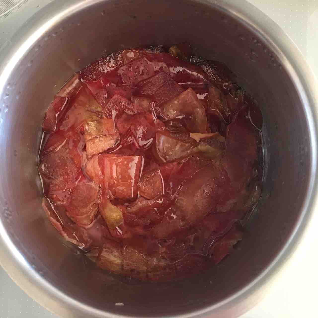 皮が入った鍋を弱火にかけ煮汁を抽出する
