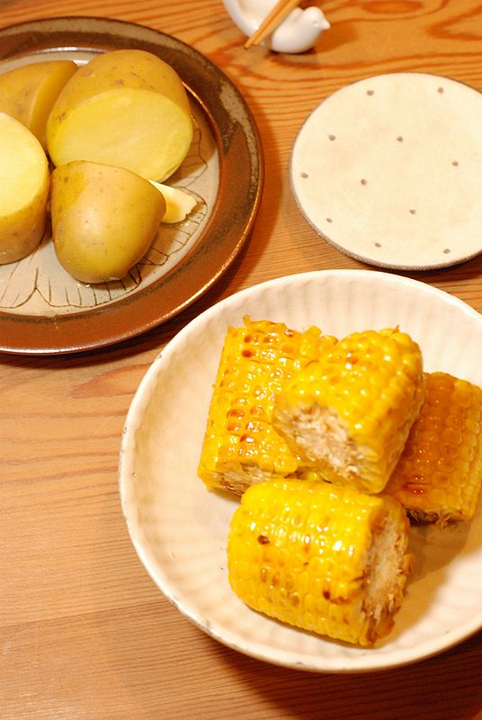 焼きとうもろこしとじゃがバター