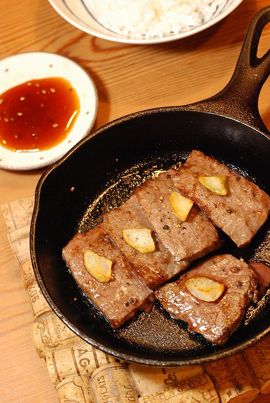 ステーキと言うと聞こえはいいけど焼き肉用のお肉をスキレットで焼いただけです