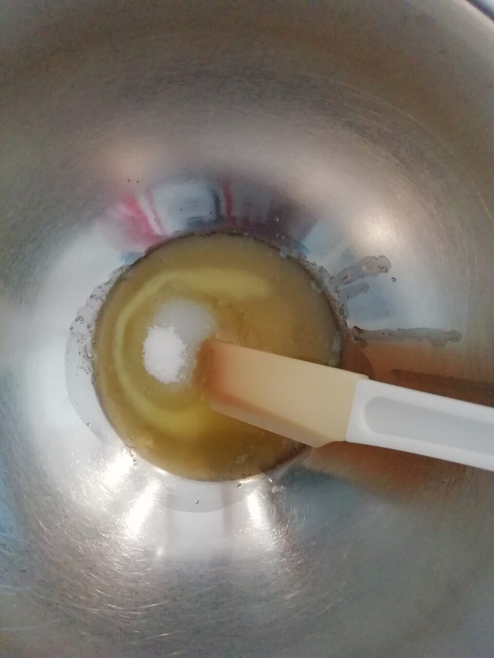 砂糖と塩を加え泡立て器でまぜる