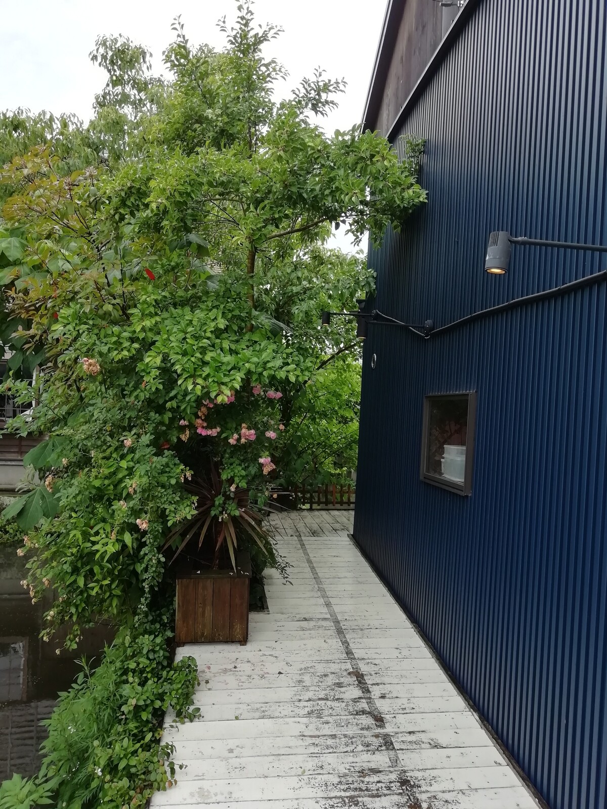 緑がキレイで佇まいに赴きがあって素敵なブルーのお店