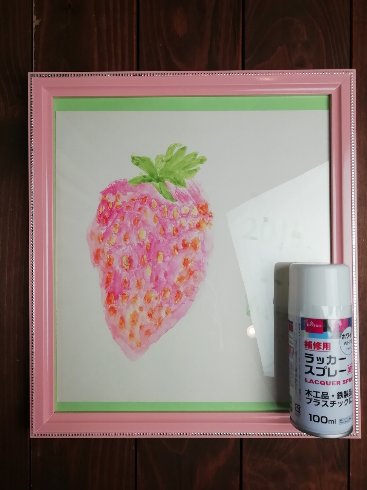 いちごだから「ピンク」がいいと思ったら、Kパパは「普通、そこホワイトやろ」ということなので、ホワイトのスプレーを買ってきました。