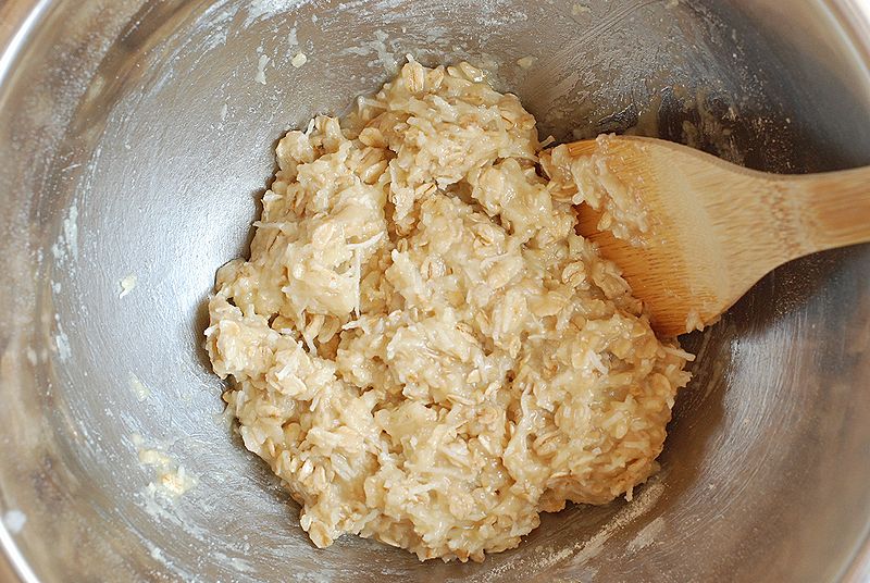 材料を順に入れて混ぜて焼くだけでオートミールクッキーができた~