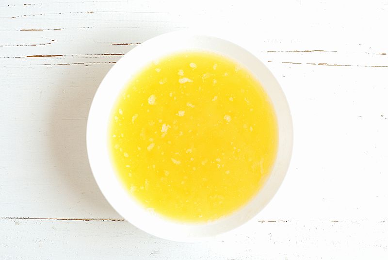 耐熱容器に無塩バターと蜂蜜を入れレンジ600wで約40秒加熱して完全に溶かす