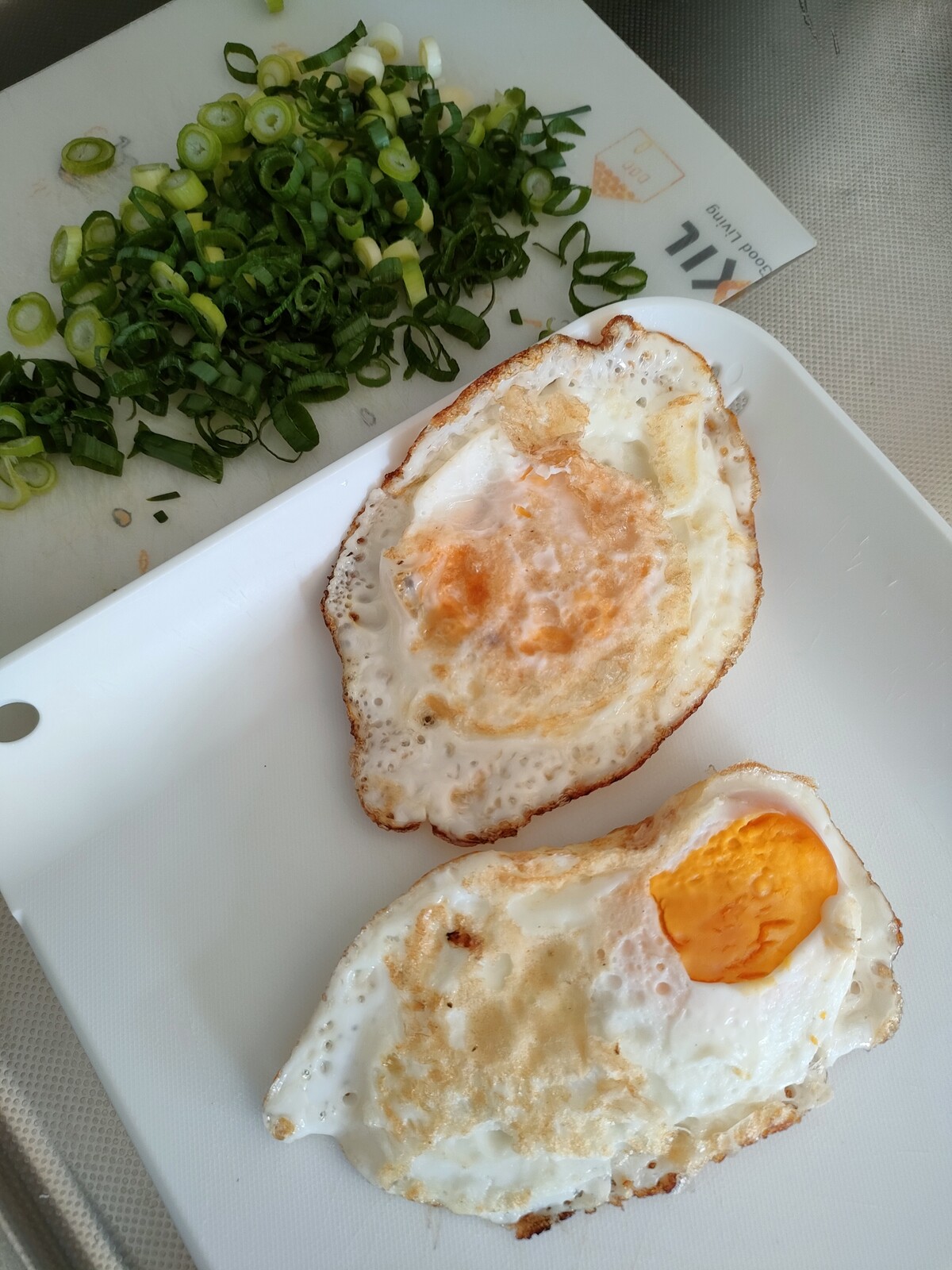 ご飯にブラックペッパーをたっぷり振り目玉焼きとネギをのせる