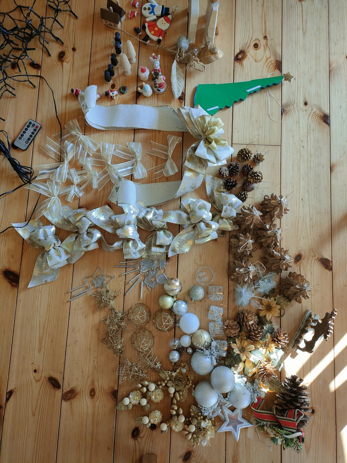 ツリーは買った時の箱に戻しましたが、以前のように綺麗にまとまらずギューギュー詰めです