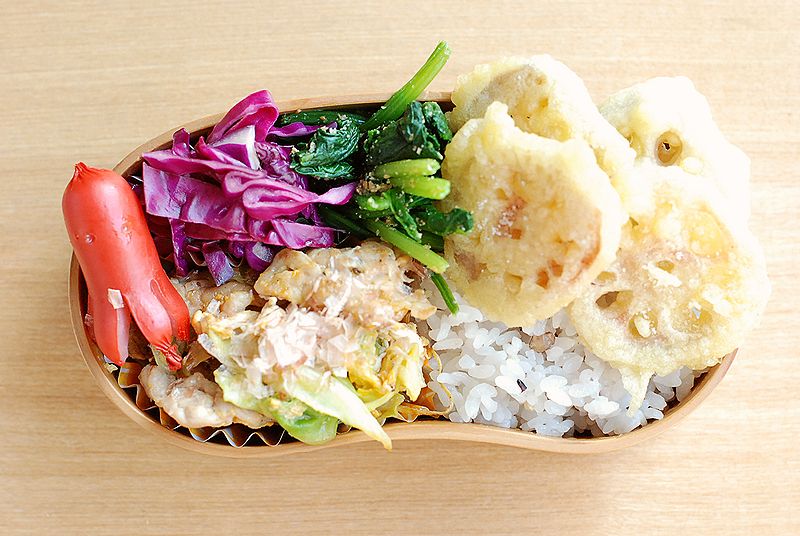 他は、ほうれん草と赤キャベツ、レンコンのおかずです。