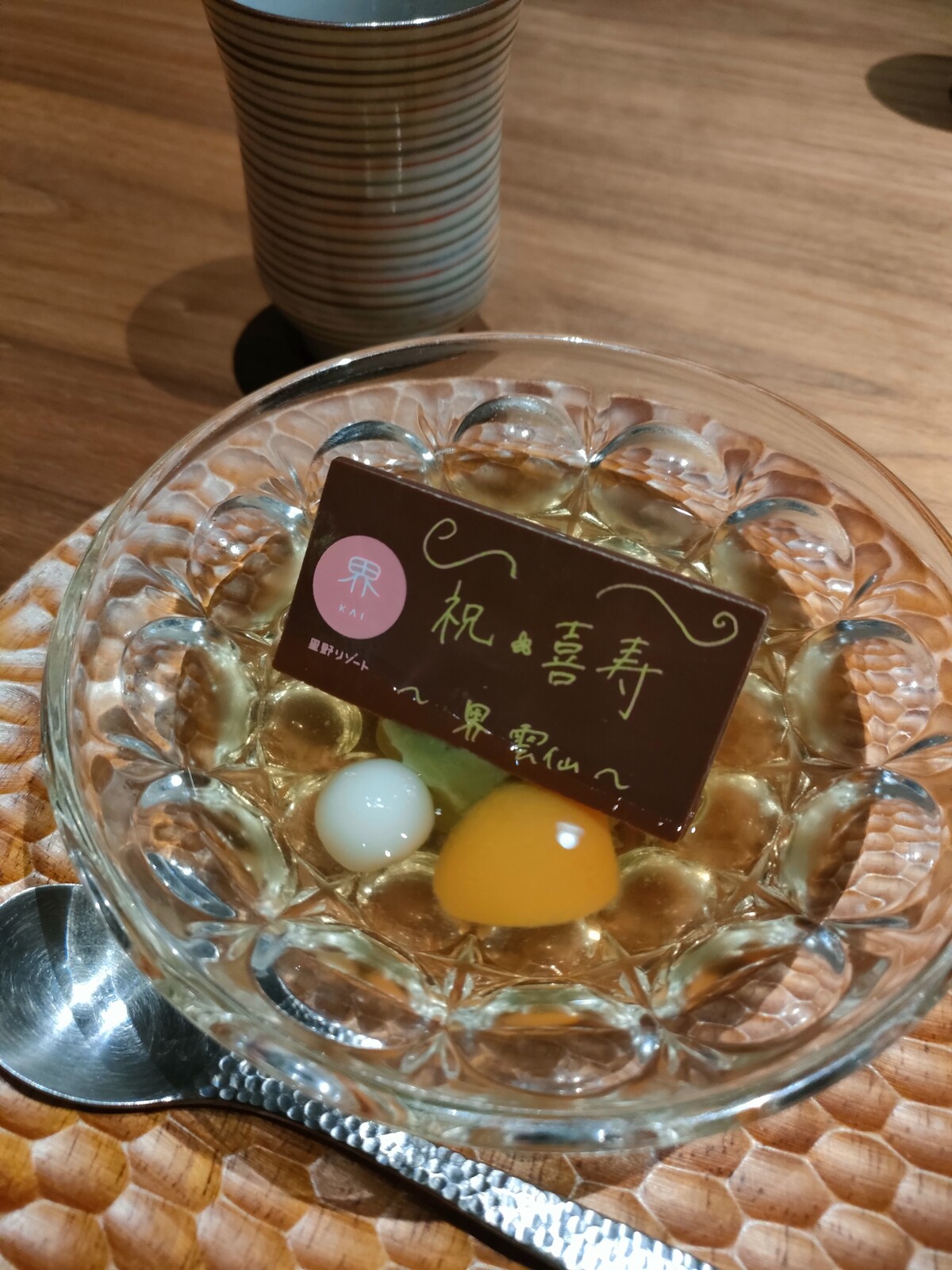 なんと、スタッフの方が、母のデザートにスペシャルプレートをつけてくださいました~