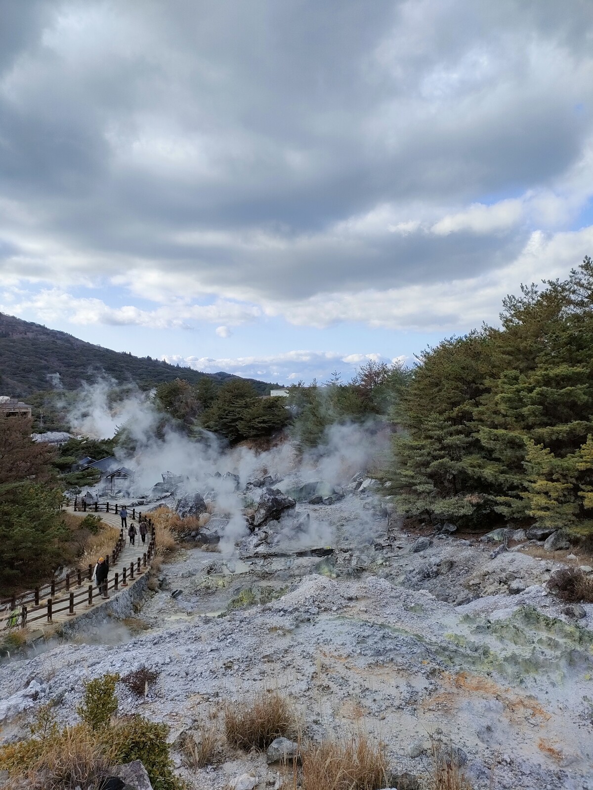「地獄温泉」という、湯けむりがもうもうと立つ観光名所が有名で、人気の温泉地なんですよ~