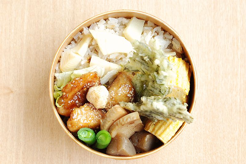 他はたけのこと卵、ウインナーのおかずを詰めました。