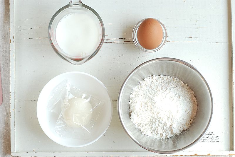 フライパンを弱火にかけバターを溶かし、生地の1/4を広げる。蓋をして3分焼いたら裏返し、再度蓋をして1分焼く。これをあと3回繰り返えし計4枚焼く。