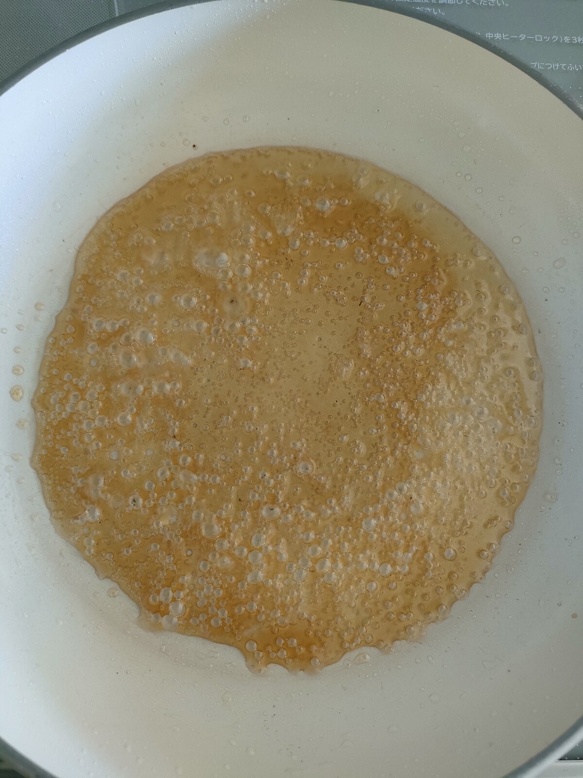 揚がった芋をいったん取り出し調味料を煮立て蜜を作ります。