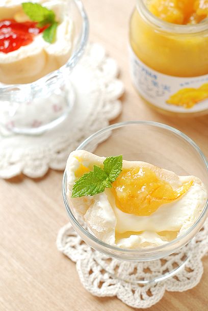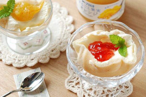 今回はオレンジジャムといちごジャムを使いましたが柑橘系の方がレアチーズに合うみたいですよ♪