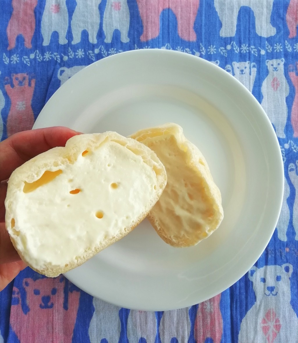 早速パクっと頂くと、ほのかに塩っ気のあるもっちりした皮の中からレモン風味のレアチーズムースがあふれ出る~