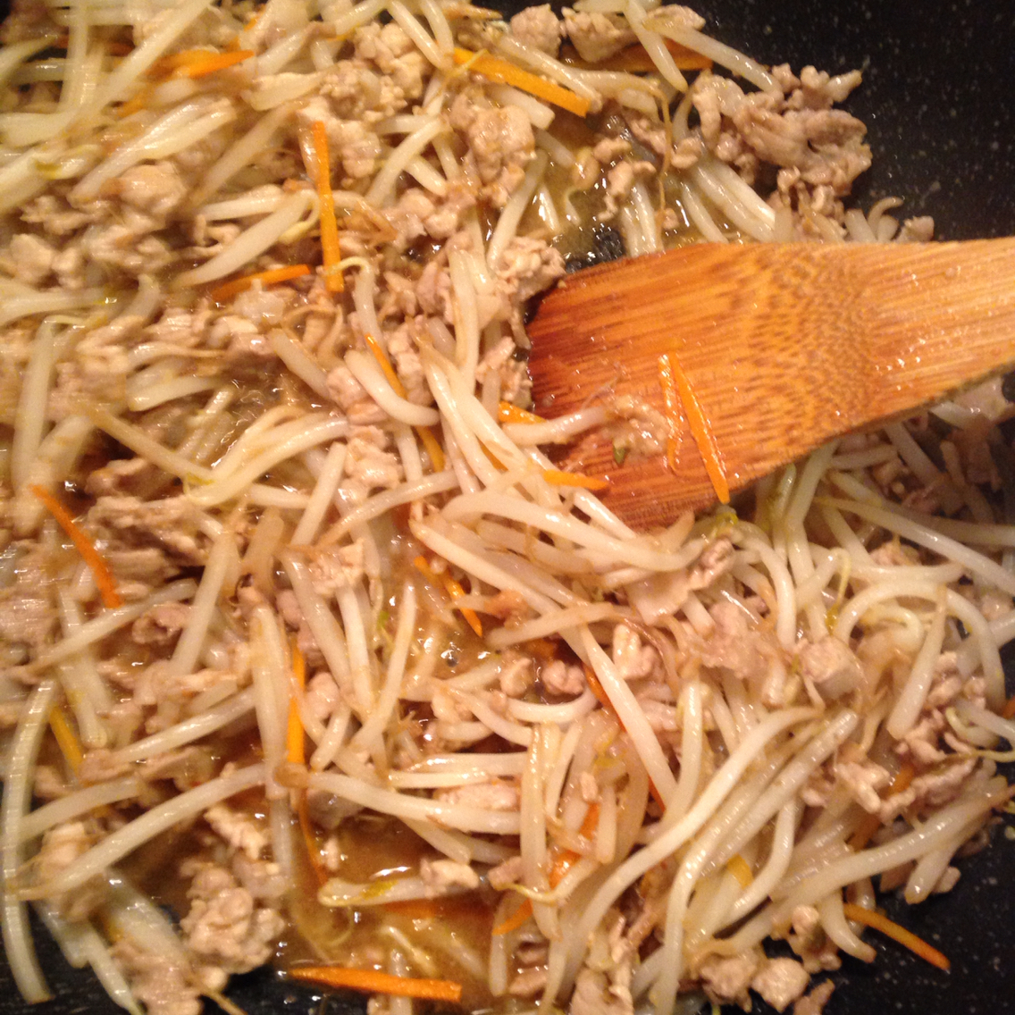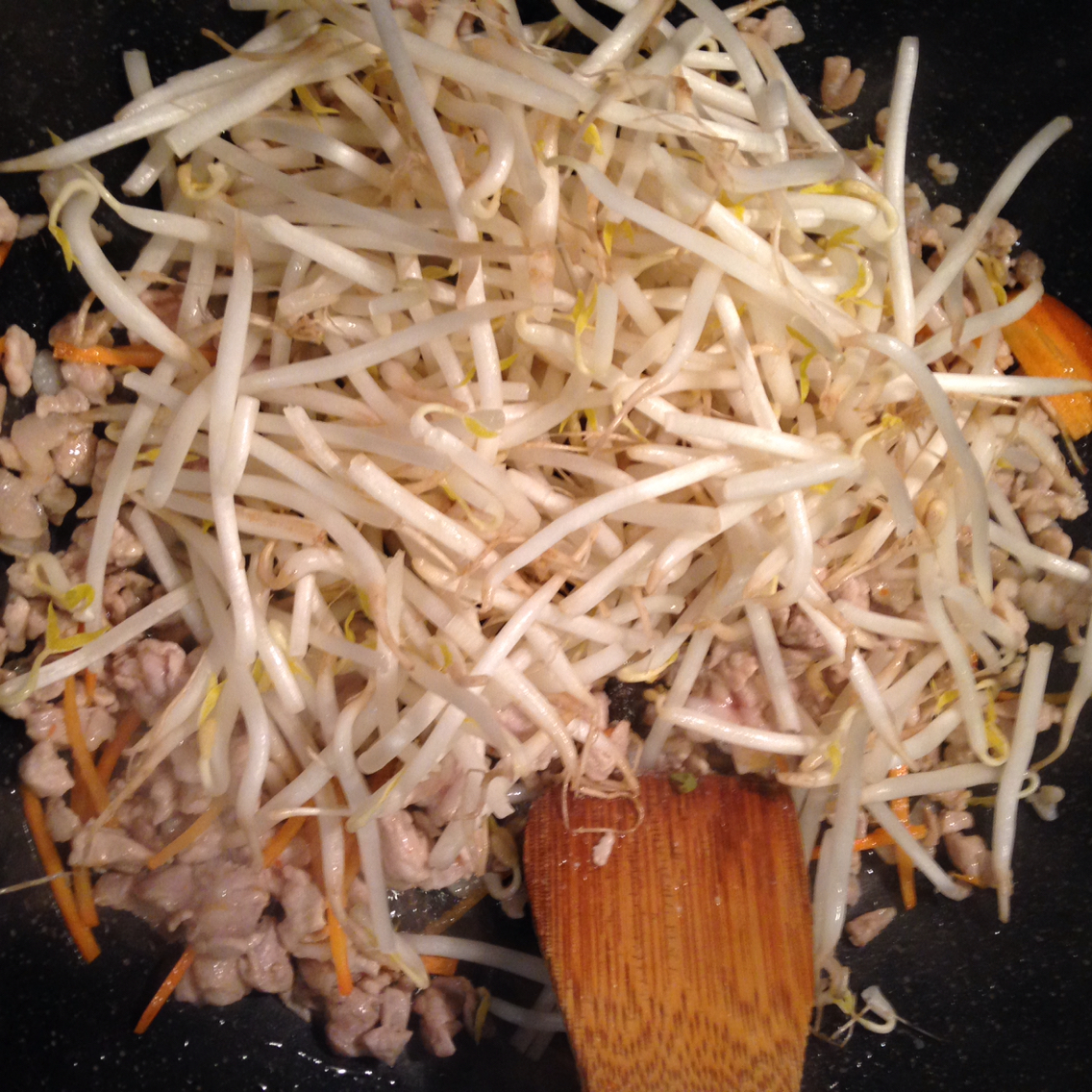 人参の細切り1cm分ともやし一袋を加え更に炒めます