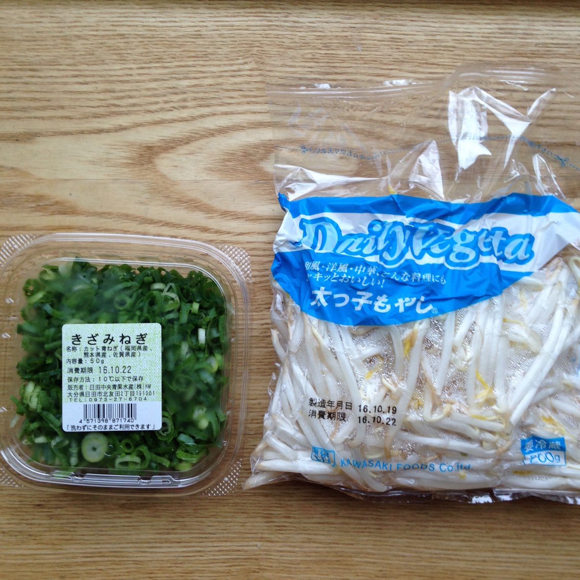 ドラッグストアで買ったもやし18円とネギ78円を使いました