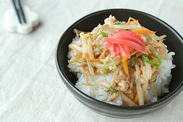 材料費4人分、200円以下で出来ちゃうのにボリュームたっぷり~なもやし丼です ^^
