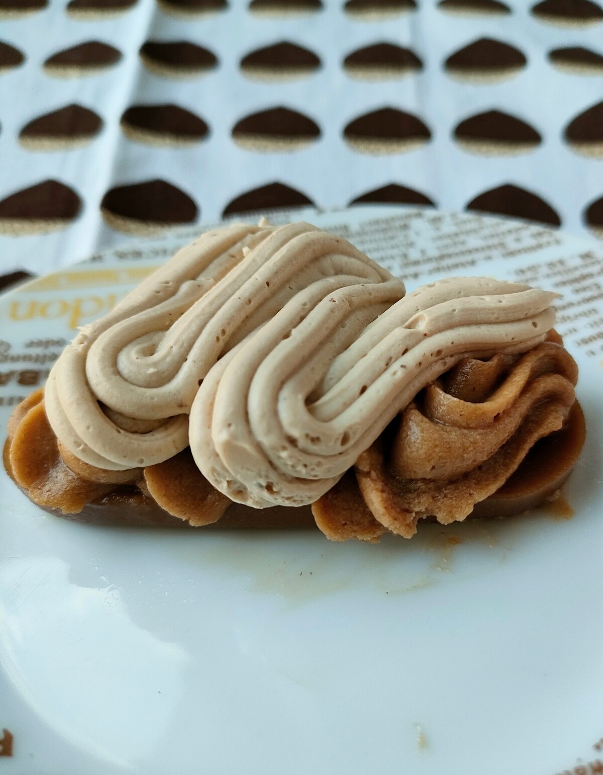 真ん中のマロンクリームは、栗特有のザラっとした舌触りとねっとり感がめっちゃ栗