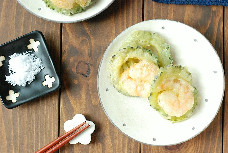 ぷりぷりのエビとサックリ揚がったゴーヤの組み合わせが美味しい~