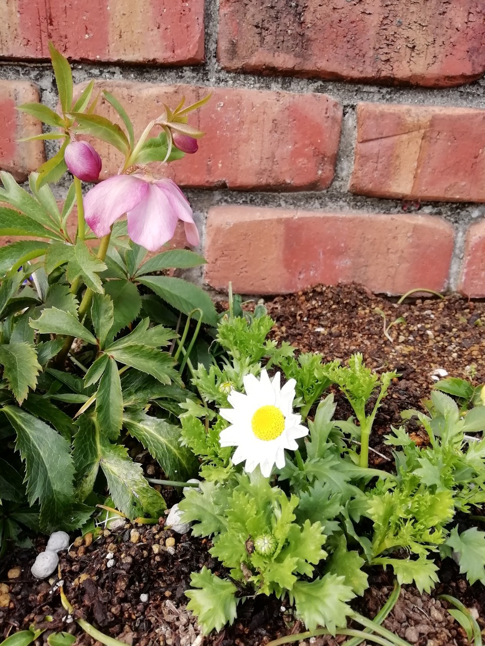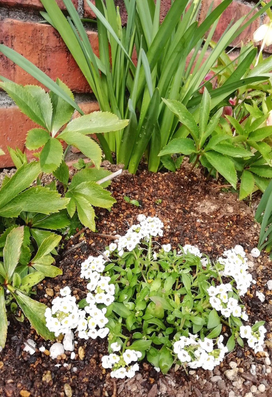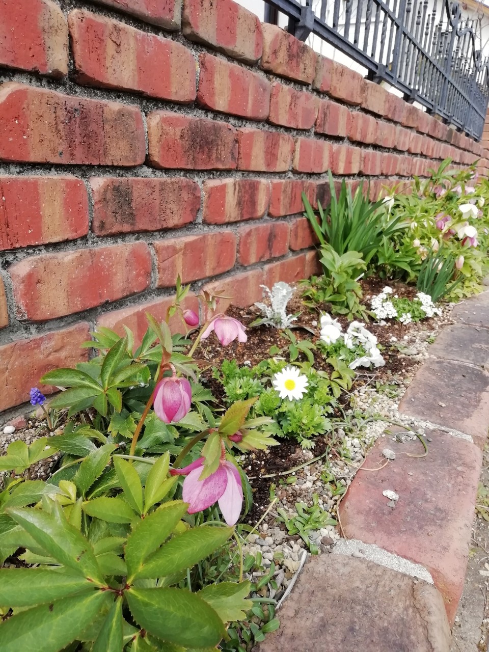 前日買った、花苗20株とチューリップの球根10球を花壇へ植え込み、エッグタルトを鉢植えにします🥚🍰