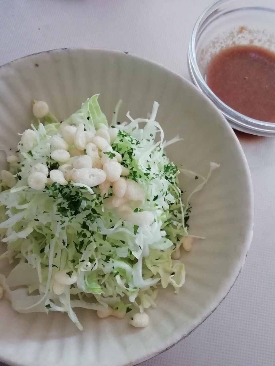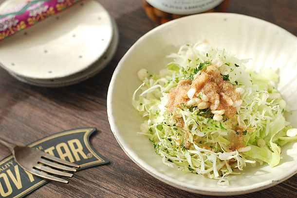 今回は、豚しゃぶにしましたが、いろんな具材の中に「キャベツの千切り」も用意しました。