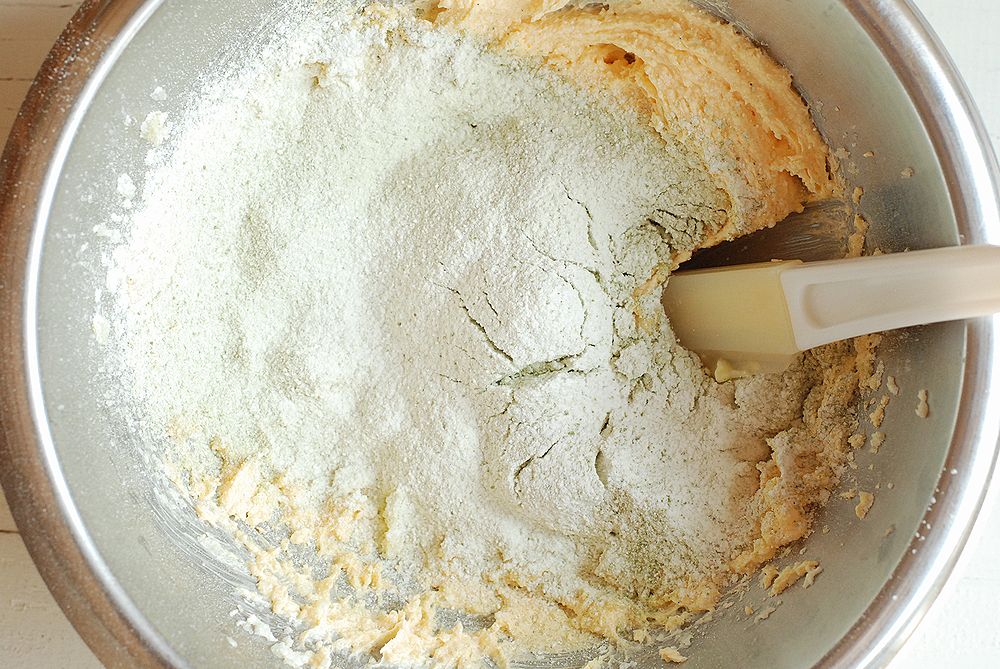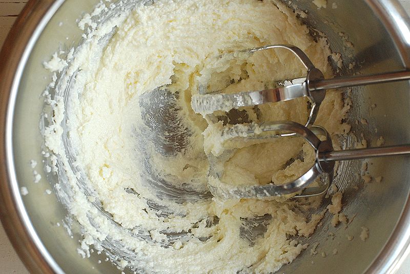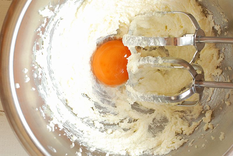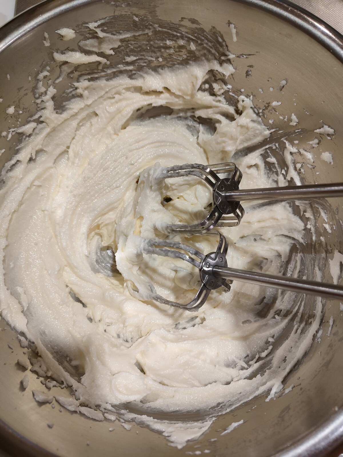 レンチンしたクリームチーズと砂糖、卵黄を混ぜて~