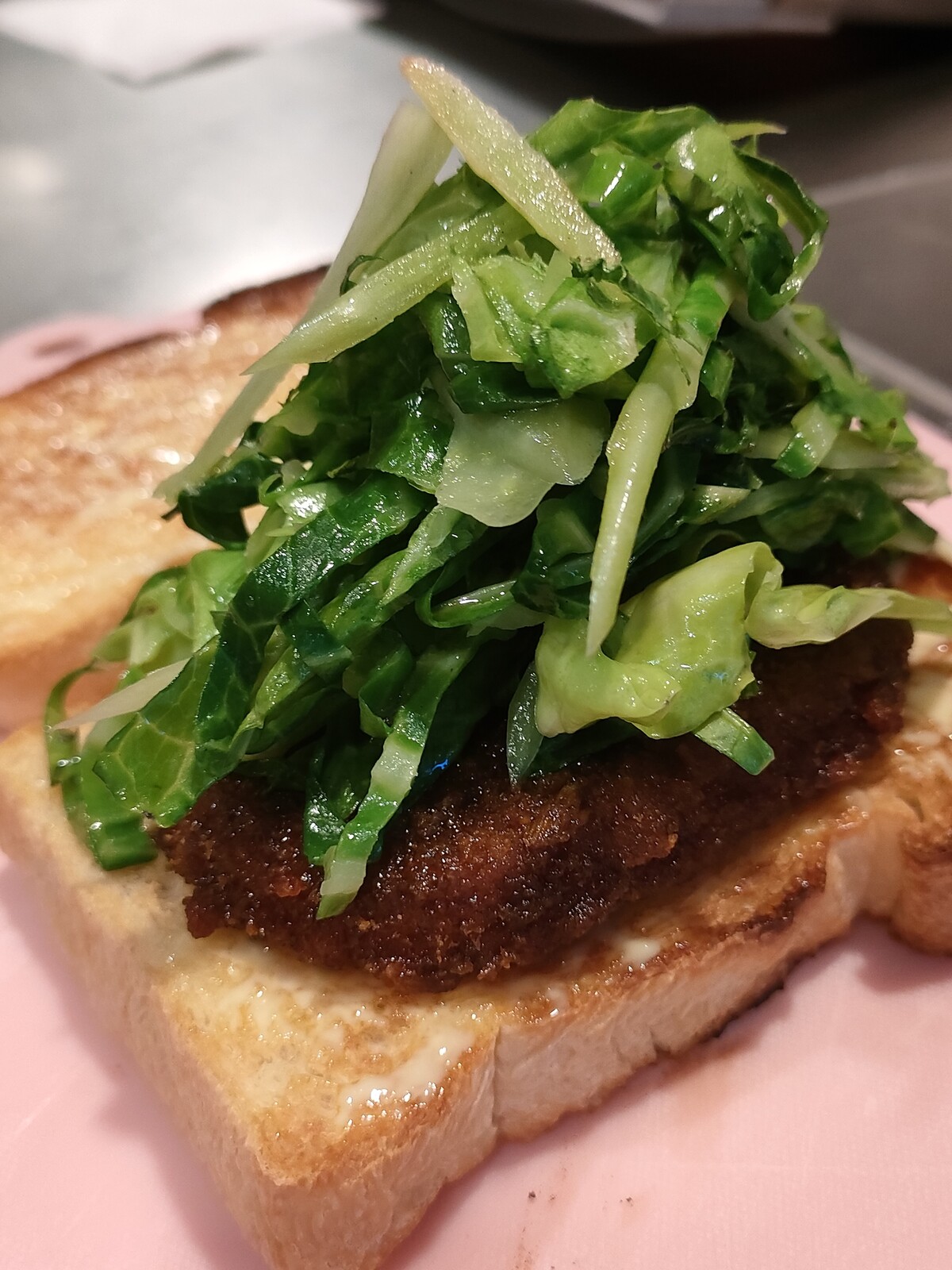 コロッケをパンにのせて~