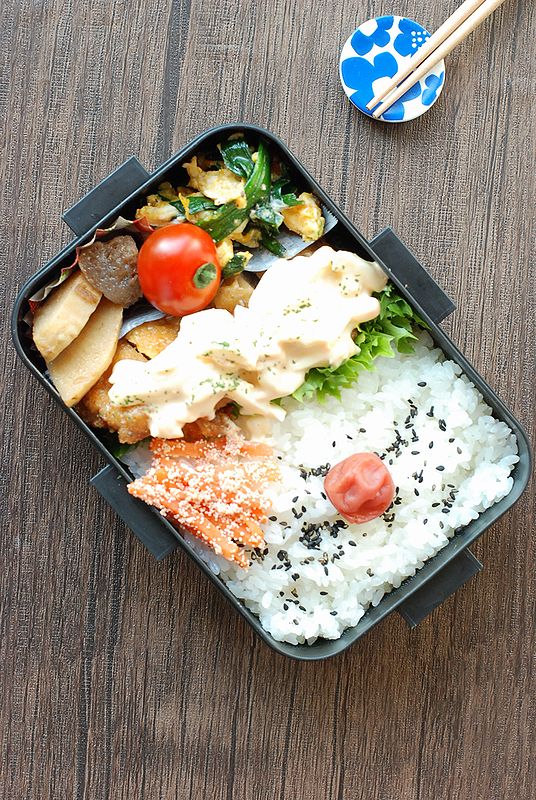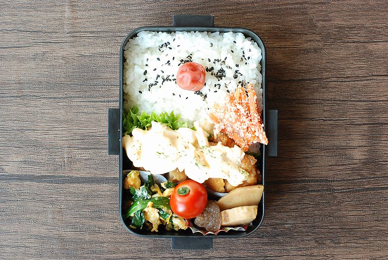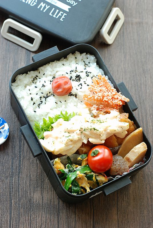 すき間に、雷こんにゃくとブロッコリー、プチトマトを詰めてます。