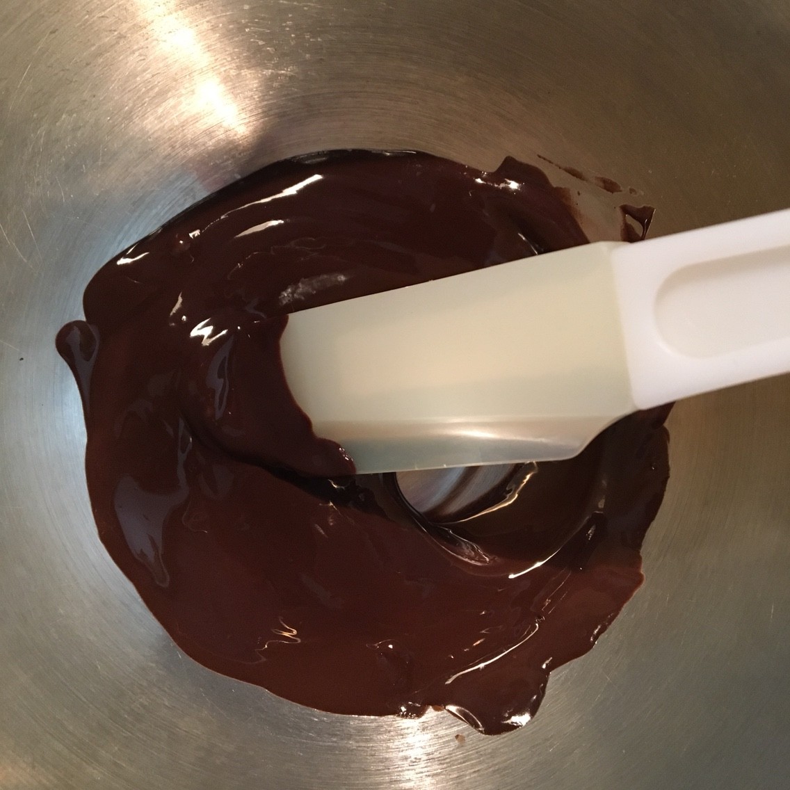 板チョコの半分は生地に混ぜ込むので湯せんにかけて溶かしておきますよ~