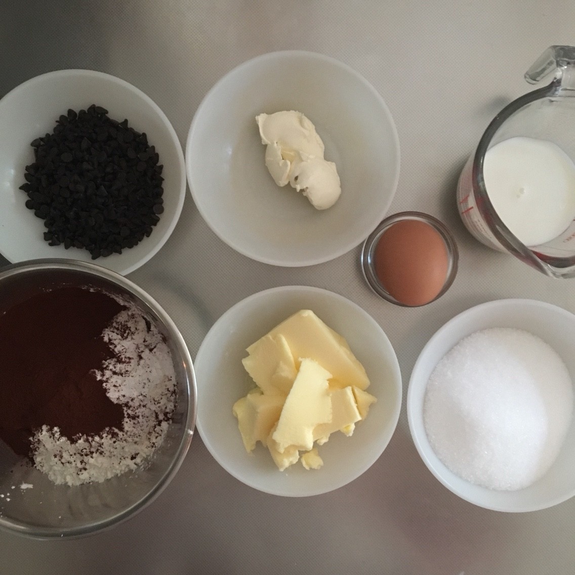 板チョコの他にホットケーキミックスやバター、砂糖、ヨーグルト、卵、ココア、ベーキングパウダーを使います