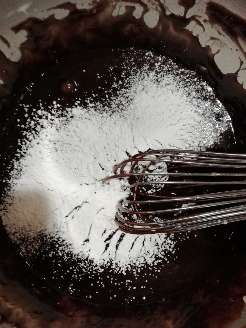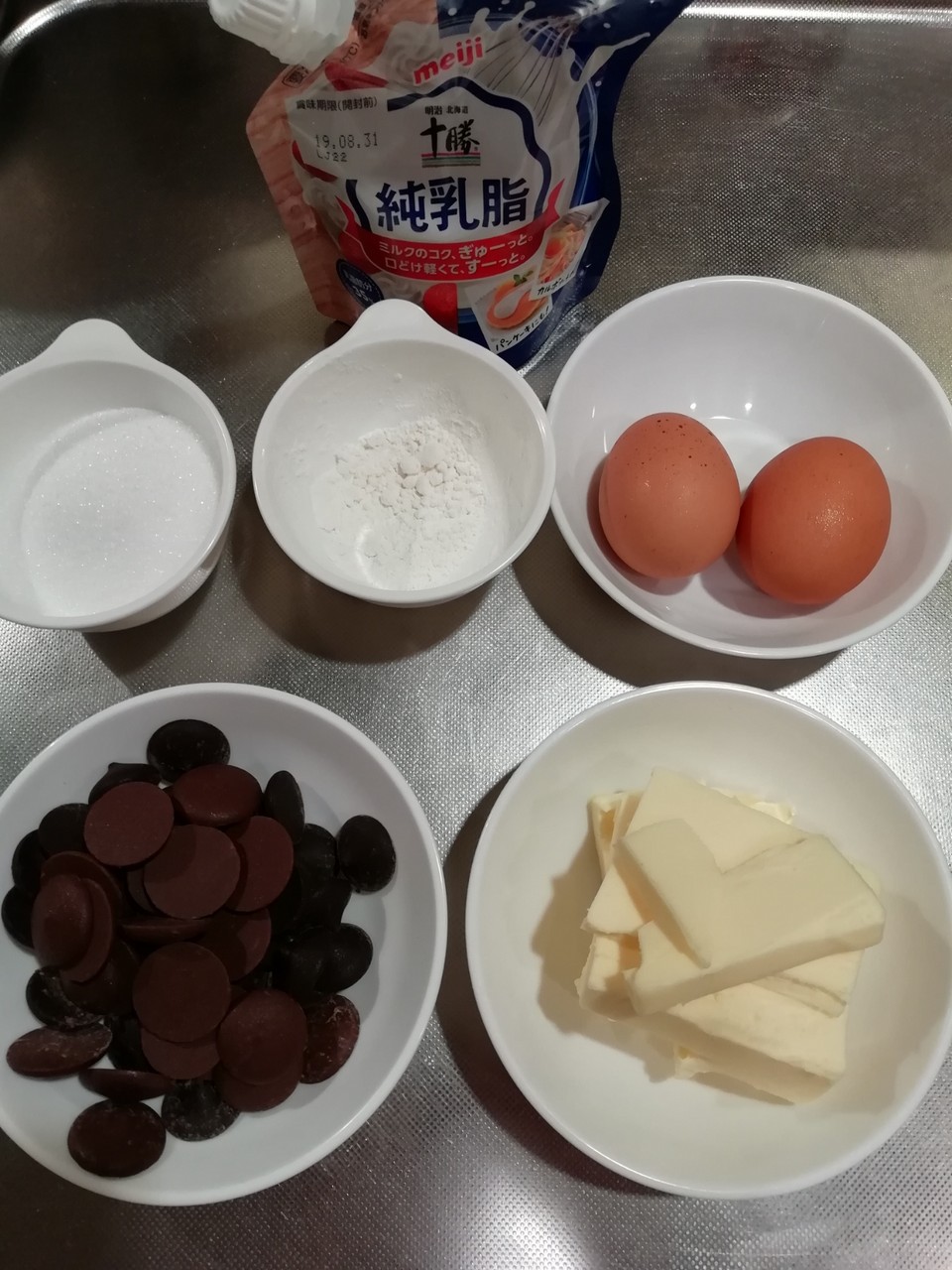 まずはチョコとバターを湯煎にかけて溶かして~