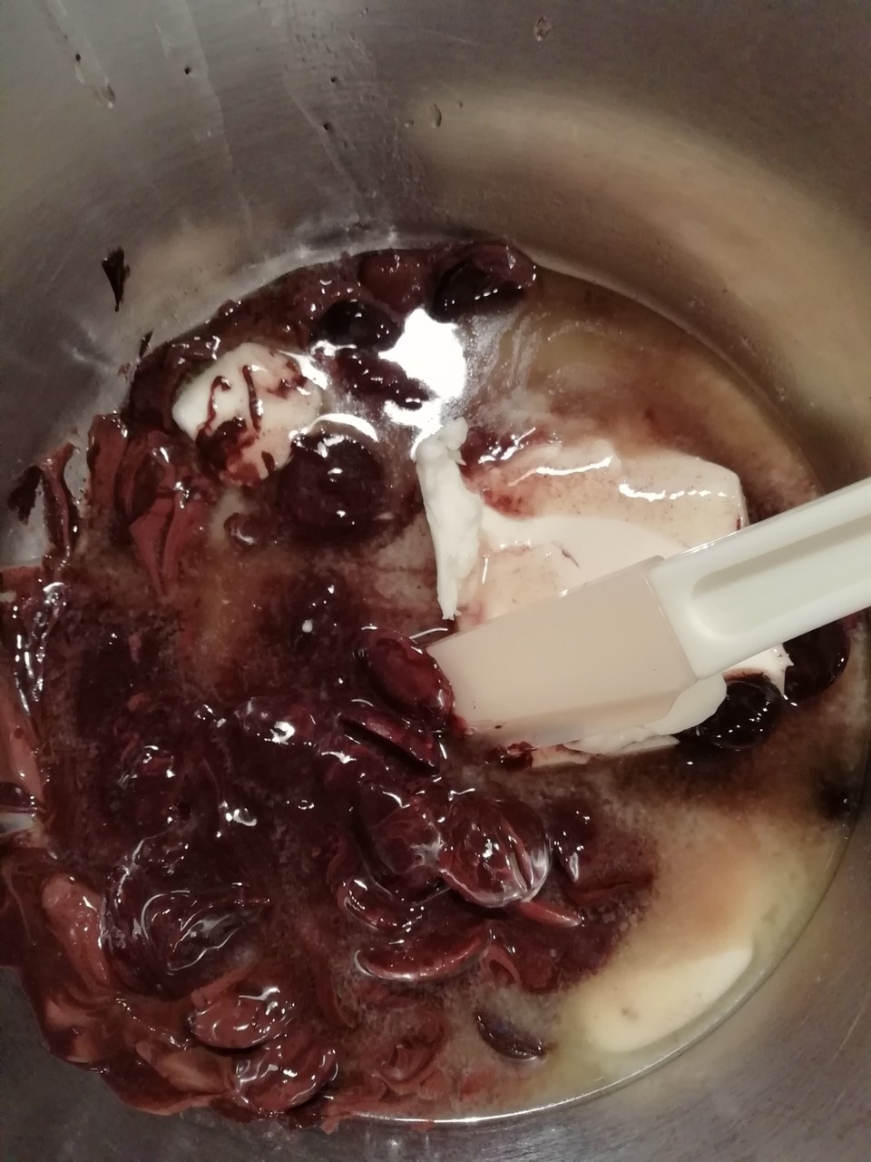 生クリーム、赤ワインの順に加えよく混ぜ型に流しいれる