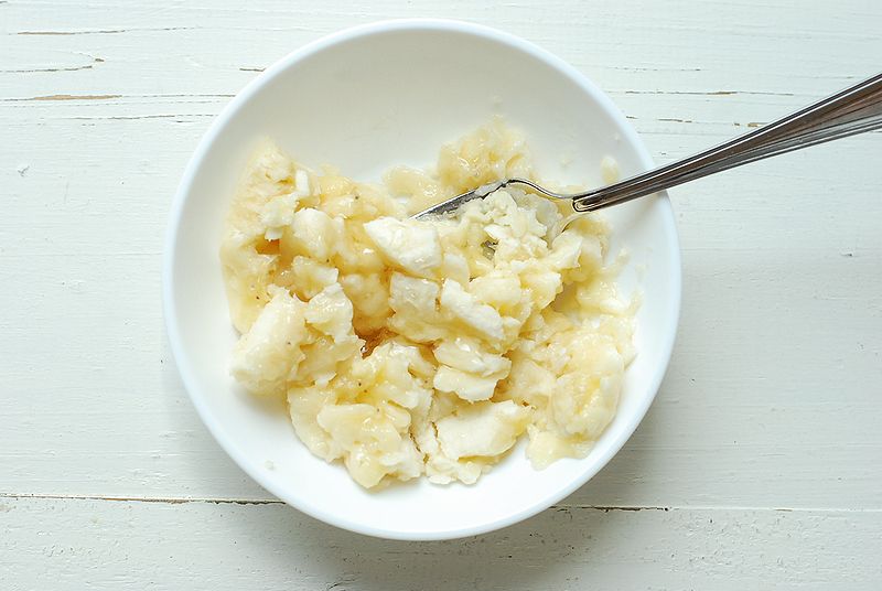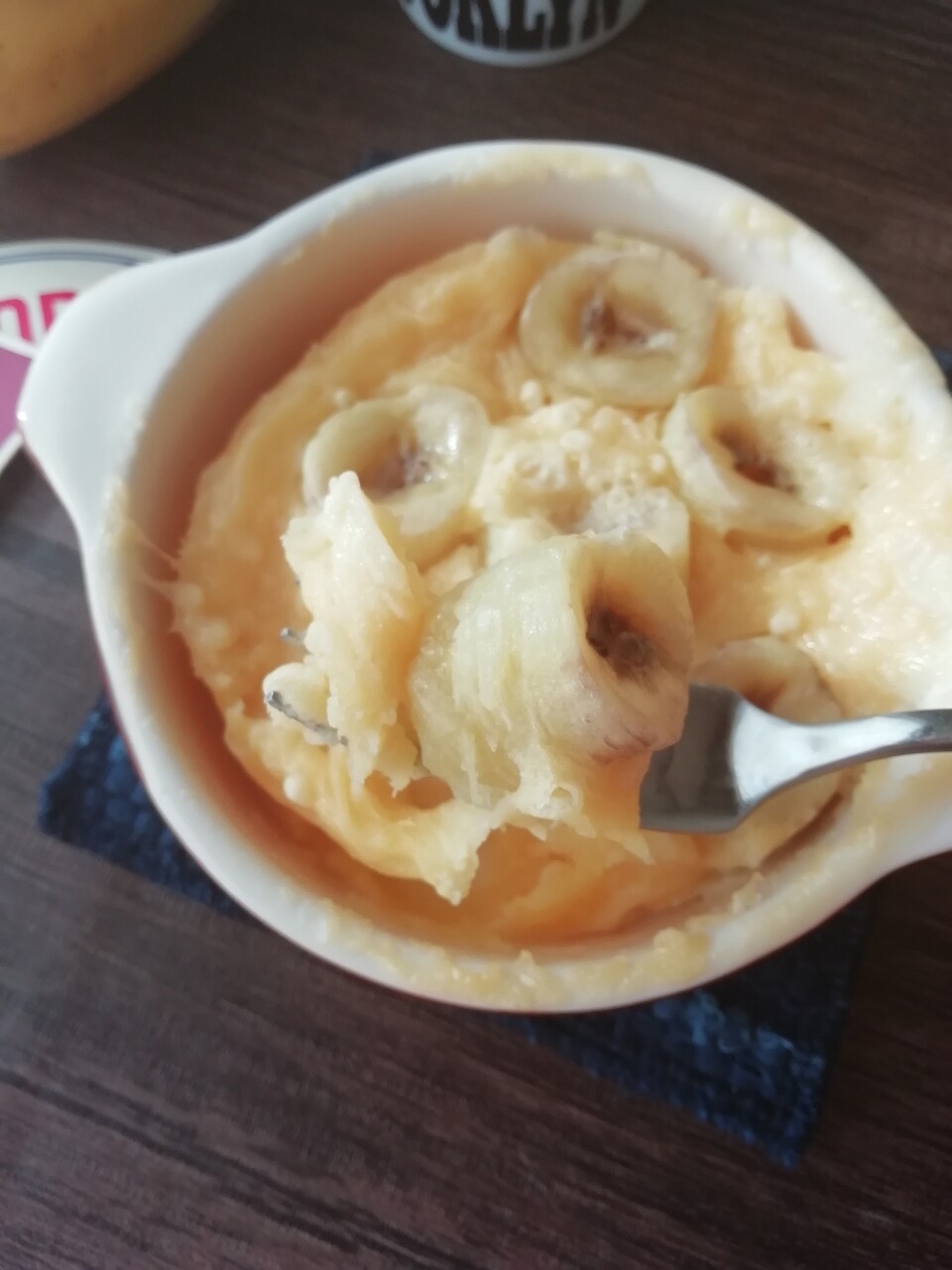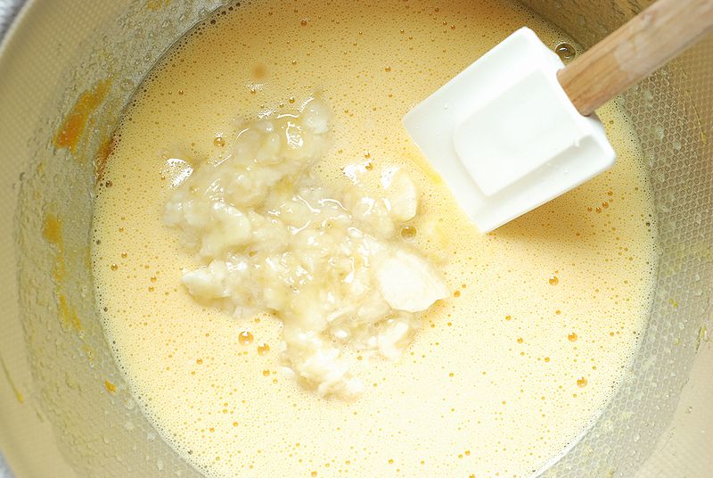バナナは半分は潰して、半分はカットしますよ~