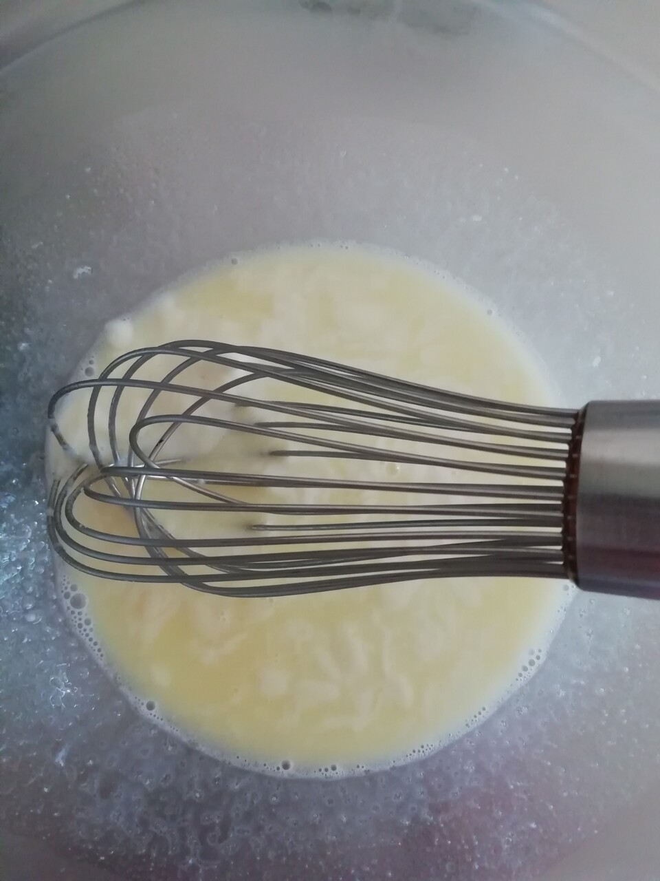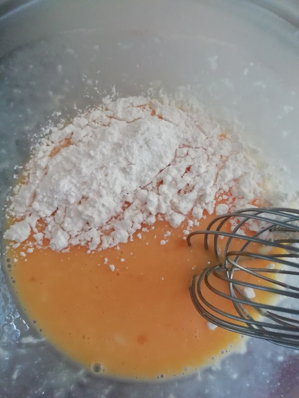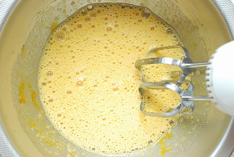 まず、卵祖砂糖を混ぜます。
