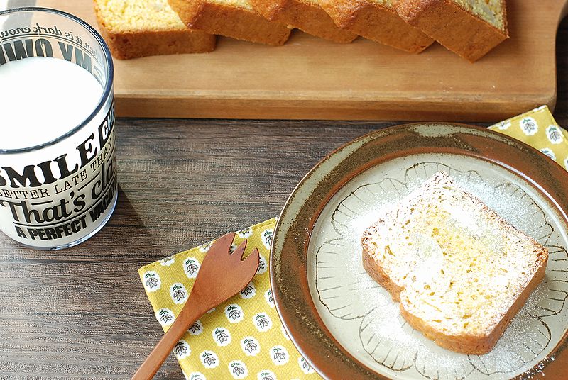 180度に予熱したオーブンで約40分、中に火が通るまで焼く(お好みで仕上げに粉糖を振る)