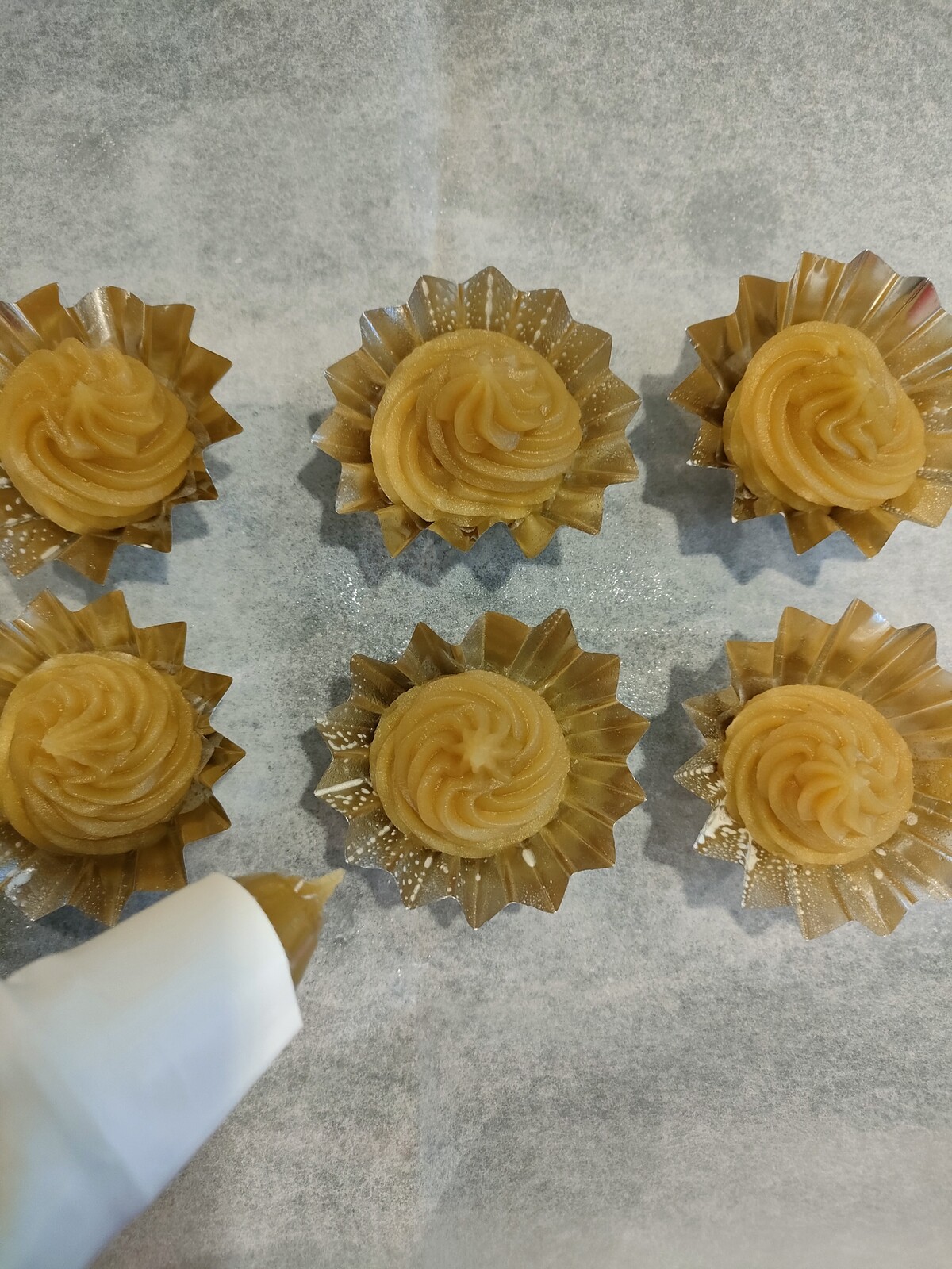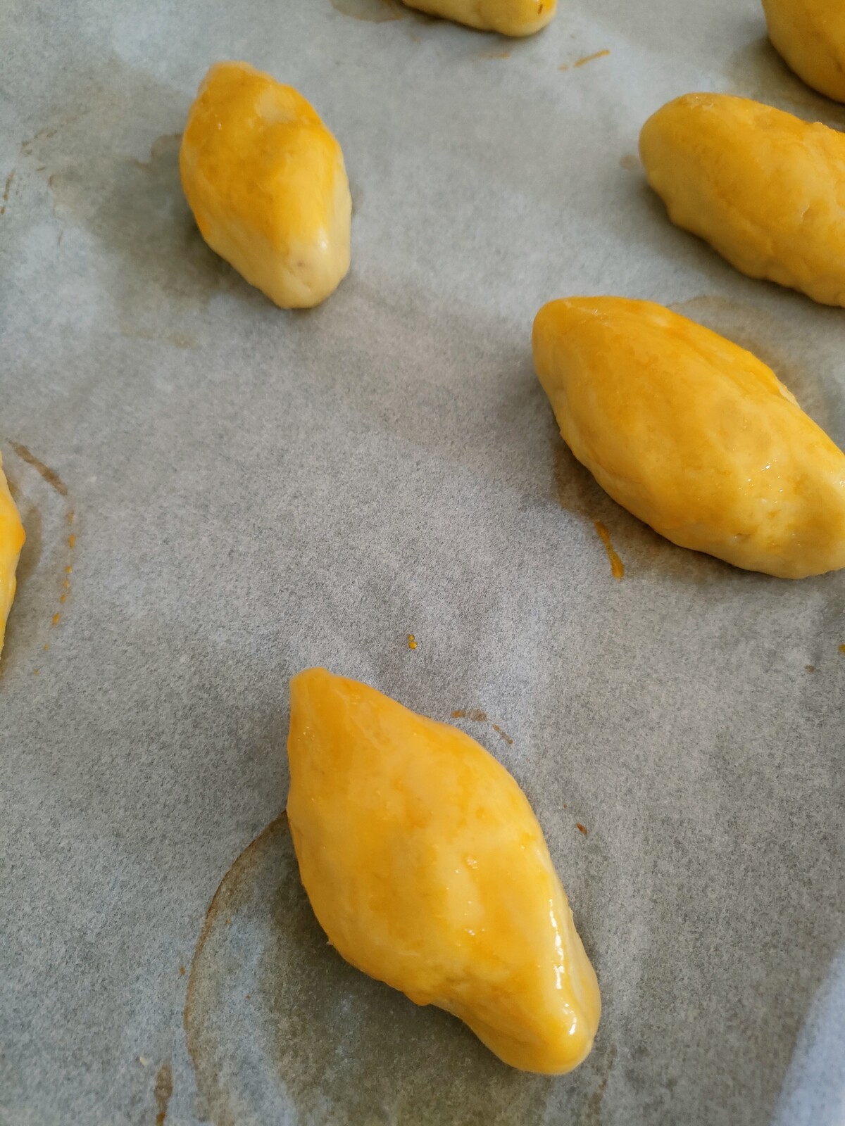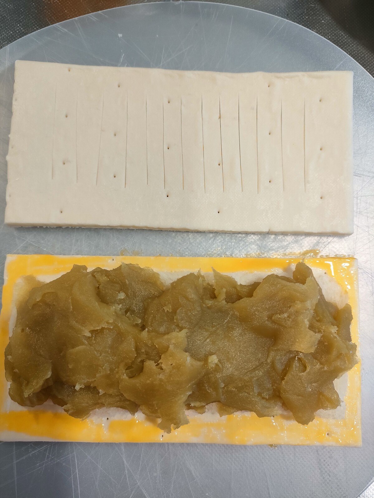 さつまいもペーストは柔らかいので、レンジ加熱して水分を飛ばしてから使用しましたー