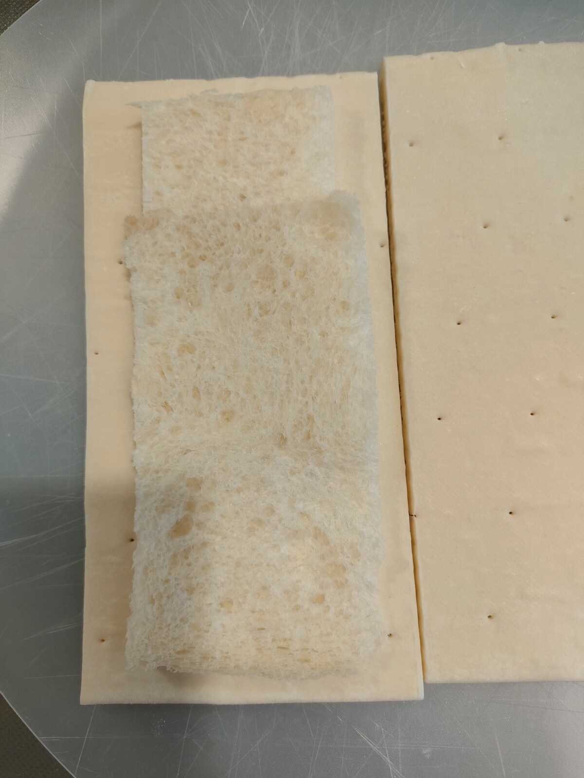 パイシートを半分にカットして、上になる方に横に6本切り込みを入れる。