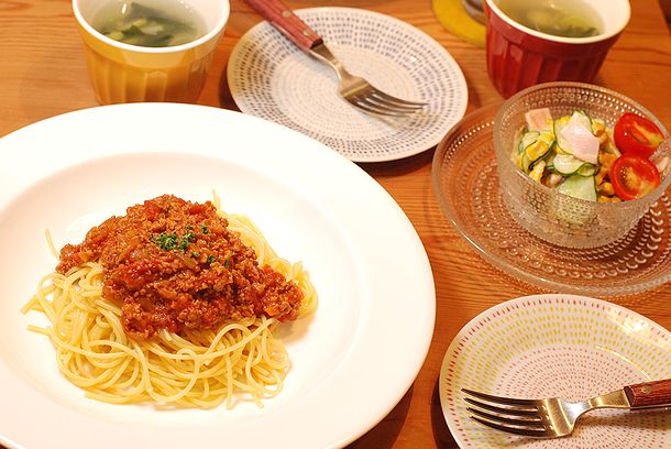 昨日はパスタを食べたい気分だったので夕食はパスタ献立にしました